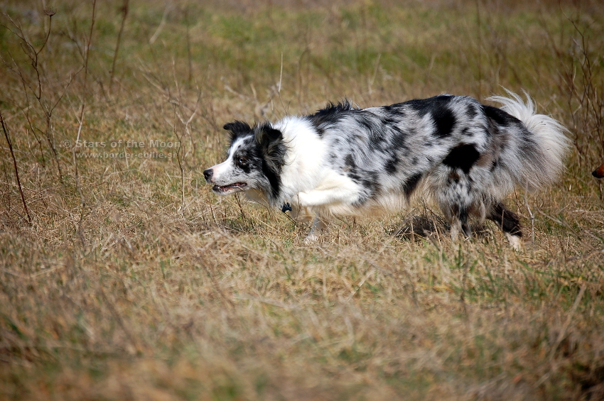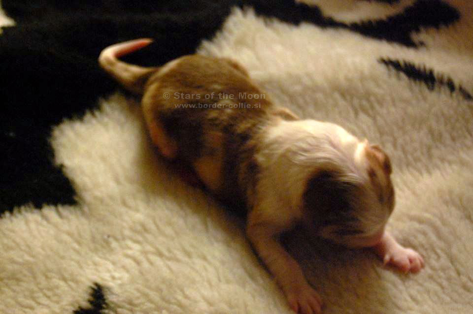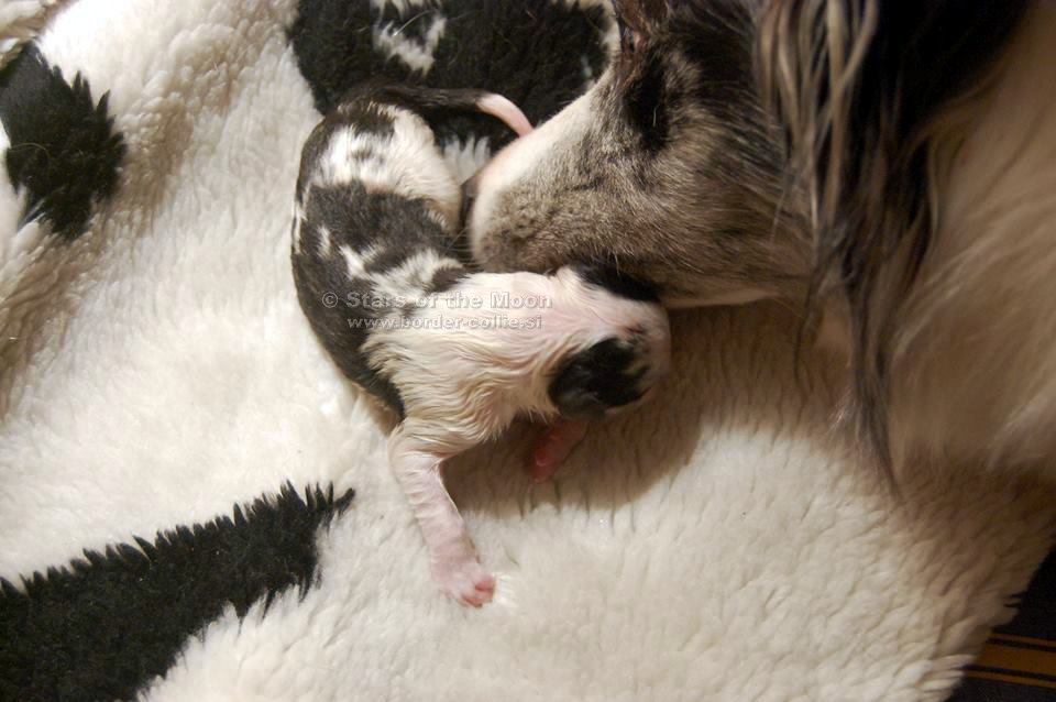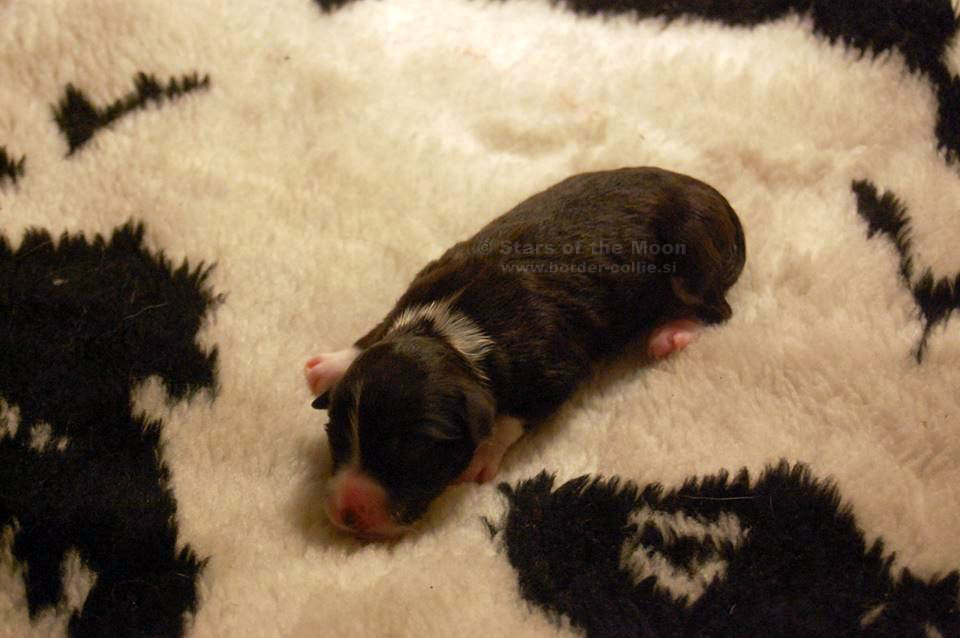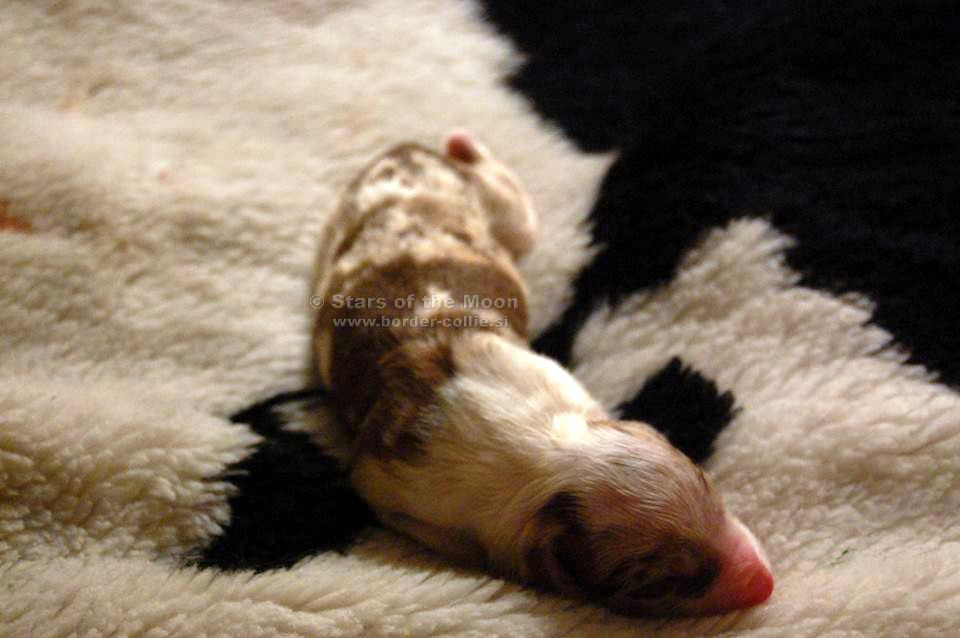 (Orio My Racy Fellow vom Beutenhof x Allymoon X’tremlynice), blue-merle, dolgodlaka, ocena kolkov: A1/A1, ocena komolcev: Normal (0) / Normal (0), CEA: Normal po starših, vzrejna ocena: Odlično – A