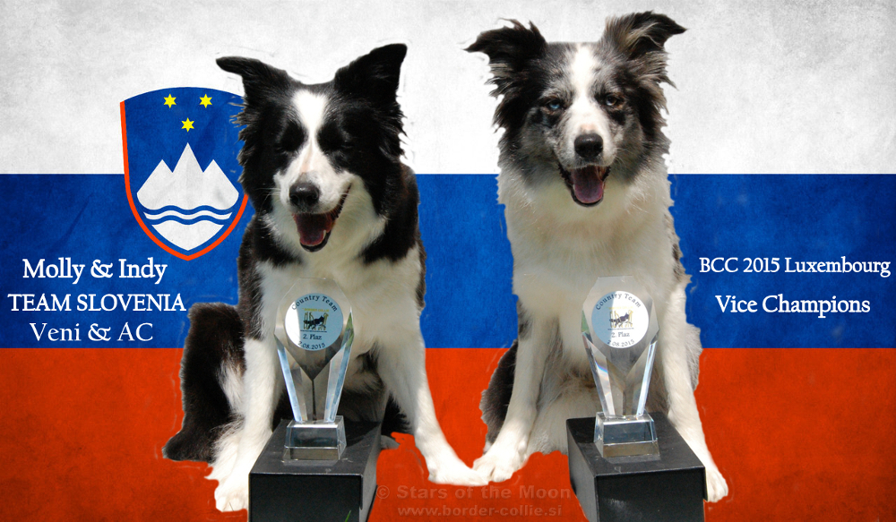 • BCC 2015 Luksemburg – udeležba na mednarodnem prvenstvu Border Collie-jev v agility-ju –uvrstitev v ekipno finale in doseženo 2. mesto – naslov ekipnih podprvakov 2015 (Molly & Indy)
